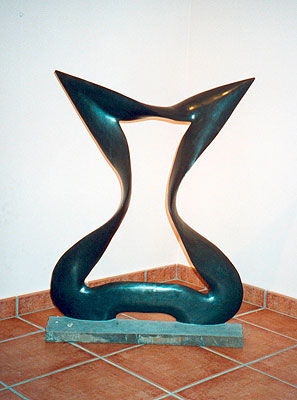 En mis obras aligero la piedra, intentando transmitir vida y movimiento por medio de cintas y otros elementos geométricos, tallando formas que parecen imposibles, que invitan a ser acariciadas, tocarlas y comprobar que son posibles.